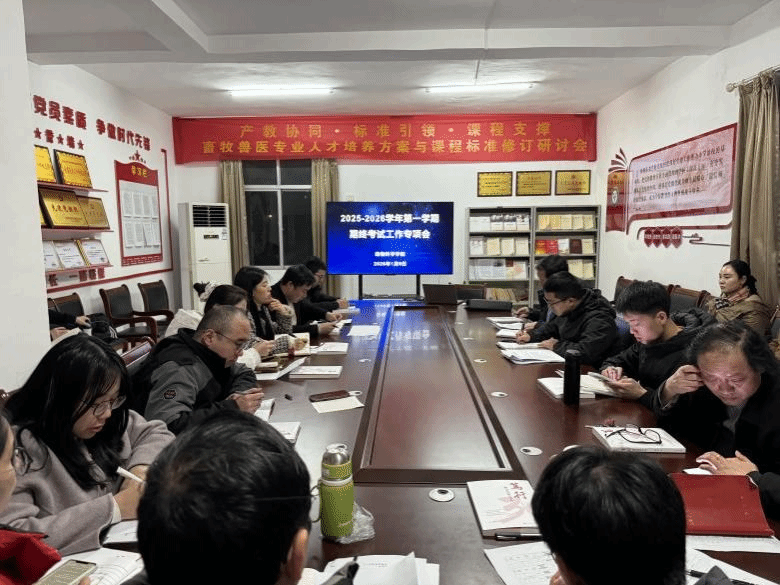1月9日晚,动物科学学院在党员活动室召开教师年度总结暨期末考试工作专项会议。分院全体教职教师参会,会议期间完成了教师述职述廉、民主测评打分等议程。