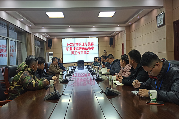 为更好地贯彻落实《关于在院校实施“学历证书+若干职业技能等级证书制度试点方案”》要求,顺利完成1+X宠物护理与美容职业技能等级证书考评工作,动物科学学院于12月29日下午在行政楼409会议室召开1+X宠物护理与美容职业技能等级证书考评工作交流会。培训考核机构名将宠美教育科技(北京)有限公司总经理李朝顺一行,教务处朱钱龙、动物科学学院曾作财、尧国荣及宠物专业方向教师参与本次交流会。