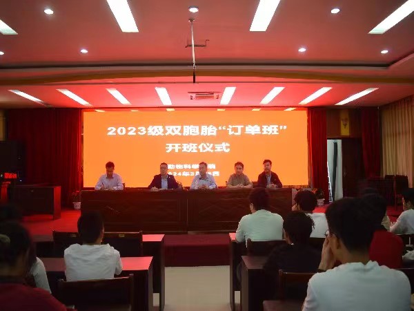 为充分发挥校企双方的优势,发挥职业教育为社会、行业、企业服务的功能,为企业培养更多的卓越畜牧兽医人才,同时也为学生实习、实训、就业等提供更大空间,学院与双胞胎(集团)股份有限公司在2023级畜牧兽医与动物医学专业开展“订单式”培养模式。3月28日下午,2023级"双胞胎订单班″开班仪式在多功能报告厅举行,动物科学学院、双胞胎(集团)股份有限公司相关负责人,“双胞胎订单班”班主任、全体学生参加了开班仪式。