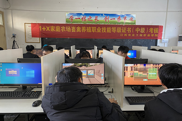 2021年11月24日上午,学院1+X家庭农场畜禽养殖职业技能等级证书(中级)考核圆满结束。本次考核计划25人,主要涉及畜牧兽医和动物医学2个专业,经培训教师宣传,学生自愿报名,通过一轮轮筛选及模拟考核,最终选出参加本次考核的25位考生。培训教师组织考生于11月8日至11月23日期间,每天晚上到5机房练习虚拟仿真实操项目,学生对考核内容掌握的比较扎实。考核期间,教务处负责人和动物科学学院负责人到考场巡考。