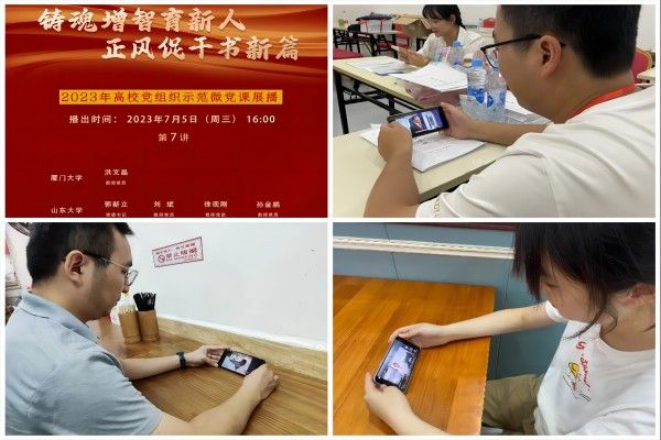 为进一步推动学习贯彻习近平新时代中国特色社会主义思想主题教育扎实开展,深入学习贯彻党的二十大精神,7月5日,动物科学学院党支部组织全体党员、发展对象收看了教育部主办的2023年高校党组织示范微党课展播第七讲。本次微党课主要围绕“建设教育强国的重要意义”“创新驱动发展”等主题,由厦门大学、山东大学、华中科技大学、重庆大学、西南交通大学等高校的党组织书记和优秀党员教师代表主讲。