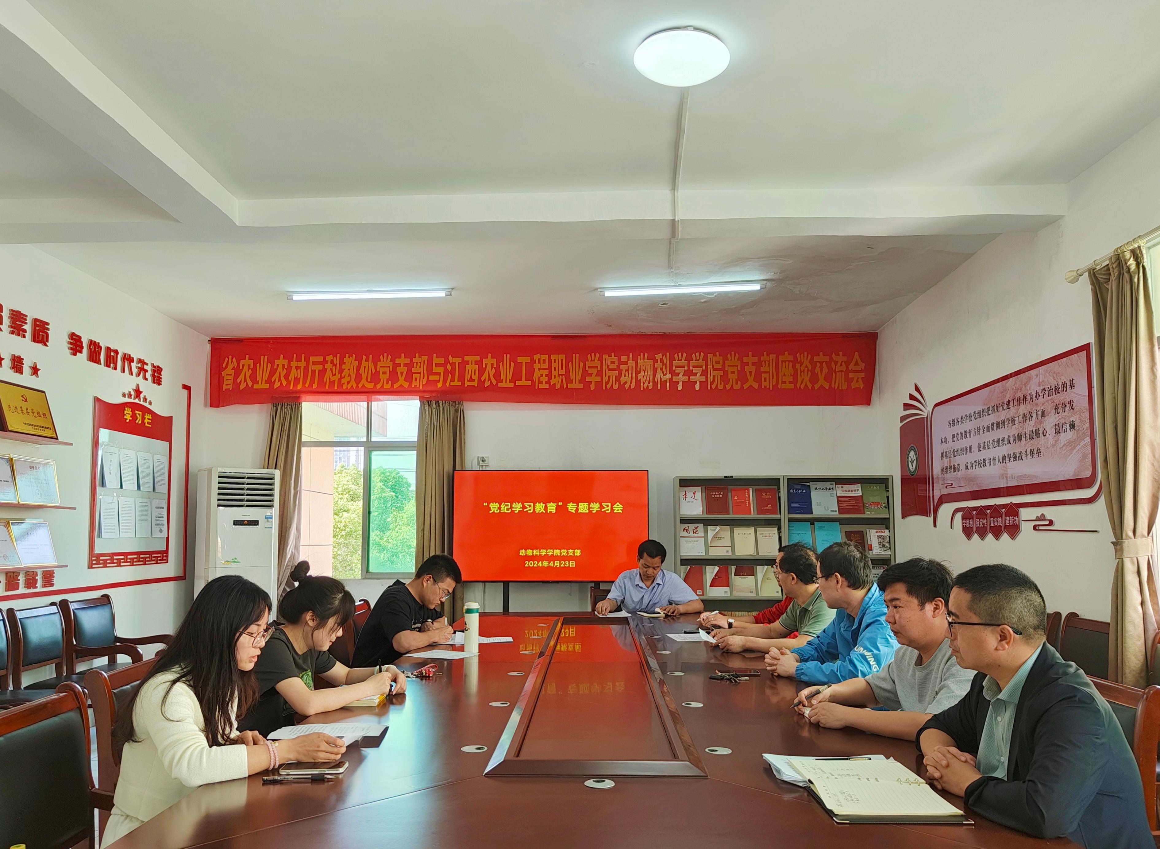 会议传达学习了习近平总书记关于党纪学习教育的重要讲话和重要指示批示精神,以及中央、省委、省农业农村厅和学院党纪学习教育有关会议精神,并强调全体党员要不折不扣、严格落实规定任务,准确把握党纪学习教育的目标要求,对《中国共产党纪律处分条例》逐章逐条深学细悟、融会贯通领会要义、联系实际学用结合,深刻领会党纪学习教育的重大意义,增强开展党纪学习教育的政治自觉。