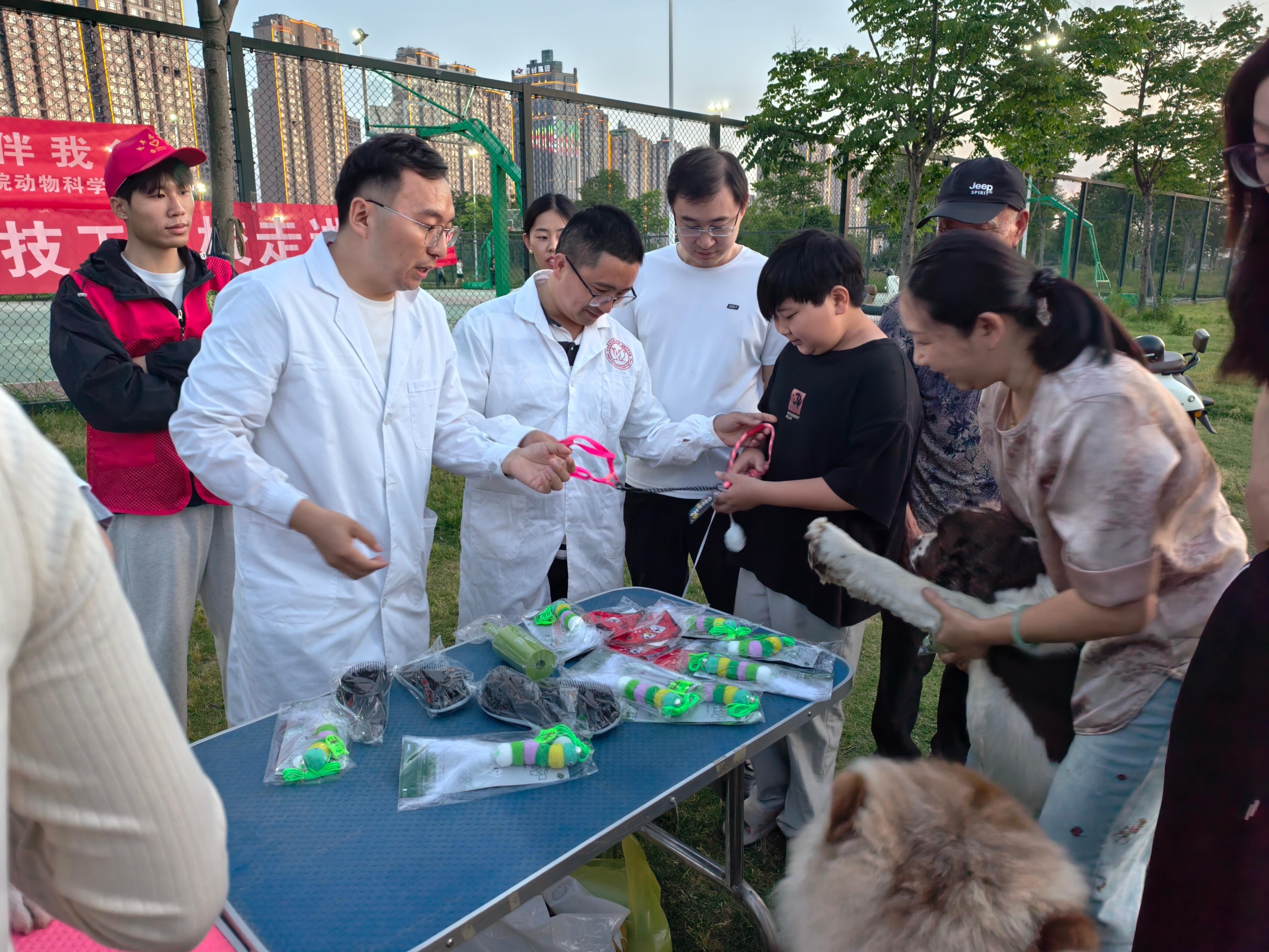 本次活动由动物科学学院党支部牵头策划,以“红色教育+专业实践”为主线,充分发挥党员教师和青年团员的先锋作用。活动现场设置宠物义诊、健康咨询、文明宣传三大板块。党员教师带领学生志愿者为宠物提供基础体检、驱虫建议、疫苗知识讲解等服务,并针对宠物常见病防治进行一对一答疑。志愿者们还向居民发放《文明养宠手册》,普及养宠法律法规,倡导“科学养护、责任养宠”理念,受到社区居民广泛好评。