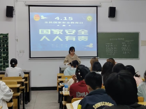活动伊始,团支书以PPT形式,从何为国家安全、危害国家安全的行为和后果、谁来保卫国家安全、如何维护国家安全这四个主题展开讲解,让同学们意识到国家安全不只是一个政治概念,更与生活息息相关。接着,团支书播放相关教育视频,同学们直观感受到了破坏国家安全行为带来的严重后果。随后,团支书带领大家一同剖析间谍窃密、生物入侵等真实案例,现场气氛活跃。最后,团支书说明国家安全是国家生存发展的基石,鼓励同学们在日常生活中时刻保持警惕,积极传播国家安全知识,以实际维护国家安全。
