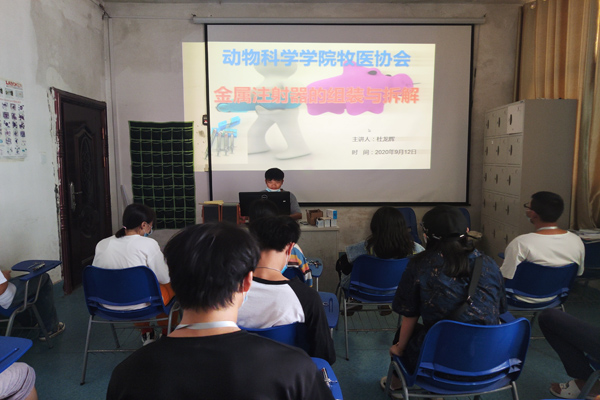 为让学生了解动物专用金属注射器的使用,9月12日,动物科学学院牧医协会开展了“金属注射器的组装与拆解”技能培训,主讲人为牧医协会副会长杜龙辉,牧医协会全体成员参加了此次培训。