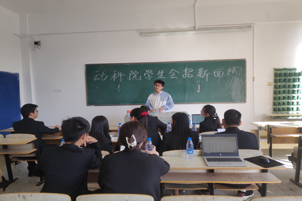 为让2020级新生更快、更好地融入大学生活,同时让我院学生会注入新鲜血液,更加充满青春活力,10月24日,动物科学学院在教学楼举办学生会招新面试。动物科学学院辅导员老师、各部门学生会成员以及2020级新生参与此次面试。