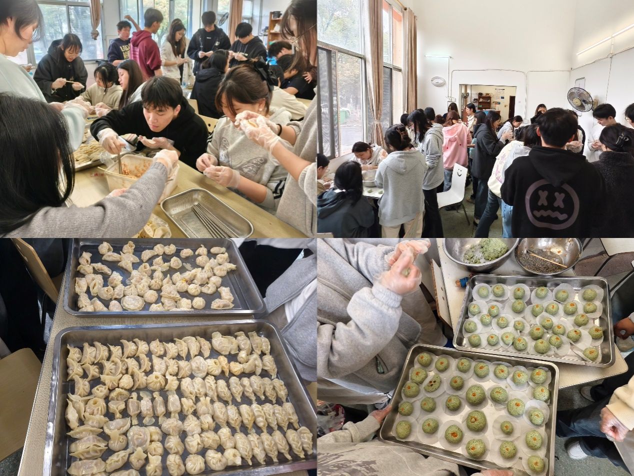 活动伊始,同学们完成采购新鲜饺子皮、采摘新鲜艾草、切配食材、调制馅料等准备工作。包饺子环节乐趣满满,同学们各展所长,既有手法娴熟的同学包出规整饺子,也有同学创新造型,捏出各式特色饺子,新手同学也积极尝试,现场欢声笑语不断。随后,同学们着手制作清明特色美食青团。初次揉面时,大家克服面团干湿不均的难题,互相交流经验、调整配比,最终揉出艾香浓郁、软硬适中的面团,再动手包制馅料,一个个绿莹莹的青团摆满餐盘,尽显春日气息。历经辛勤劳作,鲜香的饺子、软糯的青团相继出锅。同学们围坐品尝亲手制作的美食,在劳动成果中感受集体温情,收获满满的成就感。