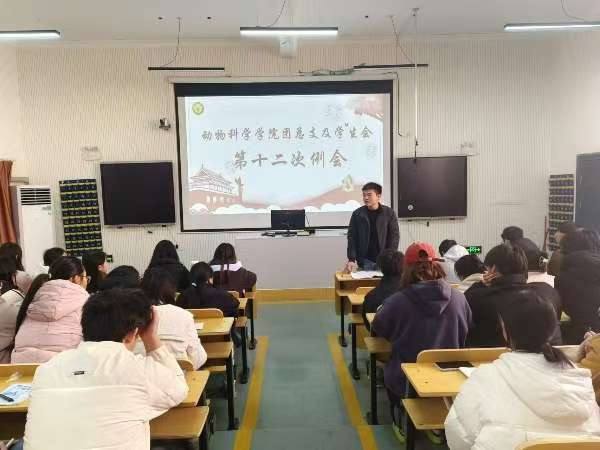 为加强学生会成员的工作能力,确保动物科学学院元旦晚会顺利举行,动物科学学院于12月19日在第二多媒体教室开展团总支及学生会第十二次例会。