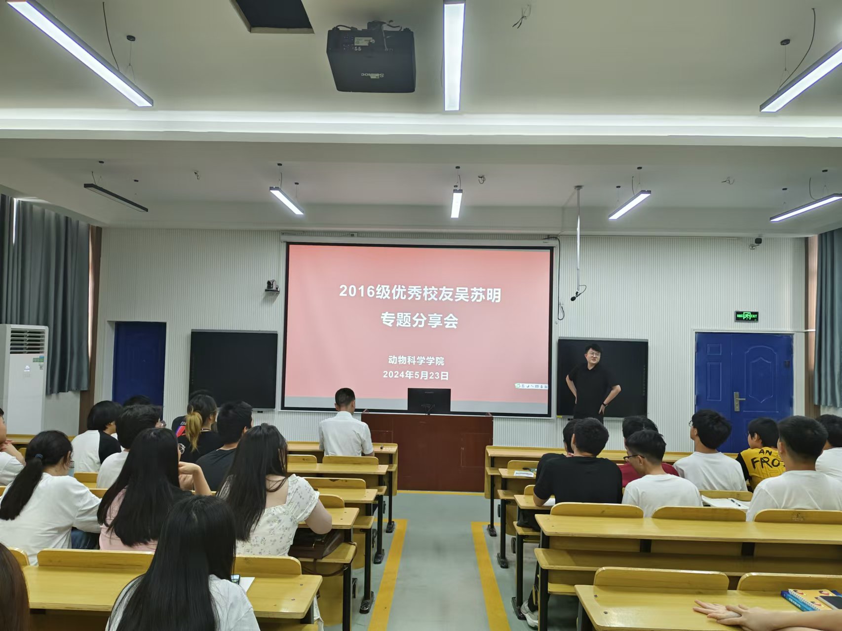 为给学生普及猪场的生物安全体系,扩展学生对猪场生物安全防控方面的知识,加深同学们对当下行业市场认识。动物科学学院于5月23日在第五多媒体邀请双胞胎集团专家与优秀校友开展专题讲座活动。