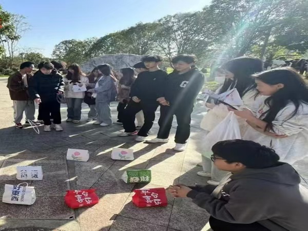 活动伊始,由心理辅导老师及负责人向同学们讲解游戏“趣味套圈”规则并将游戏道具分发给每位同学,随着游戏的推进,同学们参与活动的热情也逐渐升温,在旁驻足的学生也被这情绪所感染,时不时为成功套中的同学发出欢呼。在充满欢乐的游戏过程中,同学们渐渐释放了内心的压力,明白了同学间应该相互关怀,共同成长。而看似简单的套圈游戏,实则考验的是参与者的手眼协调能力和套圈时的良好心态,渐渐地在欢声笑语中,同学们的心灵得到了真正的放松,社交的焦虑与紧张也悄然消散。地上的大多物品都被套中,而本次心里户外活动也迎来了尾声。