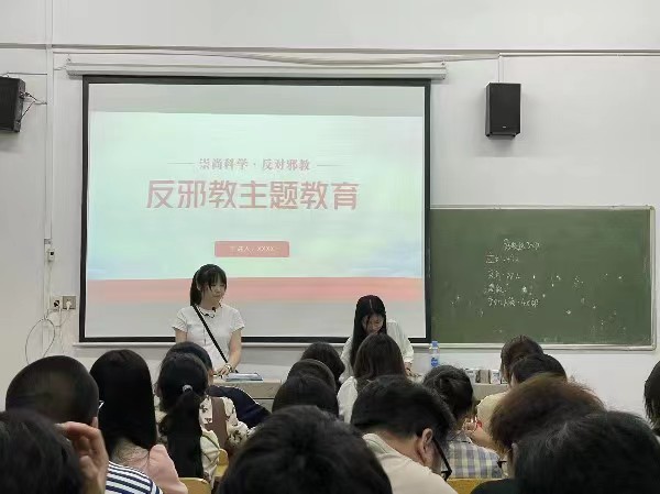 为积极引导大学生牢固树立社会主义核心价值观,形成关爱生命、崇尚科学、反对迷信的思想意识,提升学生识别和抵御邪教的意识和能力,动物科学学院于4月28日开展“反邪教宣传教育”主题班会。