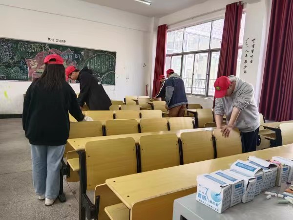 教学楼教室的墙壁上、桌椅上的“涂鸦作品”,让原本美丽、整洁的校园蒙上了不和谐的符号。清洁行动,刻不容缓,志愿者们带着抹布、垃圾袋等劳动工具来到教学楼。活动中,志愿者们热情高涨,干劲十足,分工明确。大家互相配合,热火朝天的干了起来。经过志愿者们不懈努力,教学楼教室的涂鸦基本清洁完毕,看着焕然一新的桌椅,志愿者们都露出了开心的笑容。志愿者们在平凡中践行雷锋精神,用实际行动促进团结友爱、助人为乐的良好风气的形成。