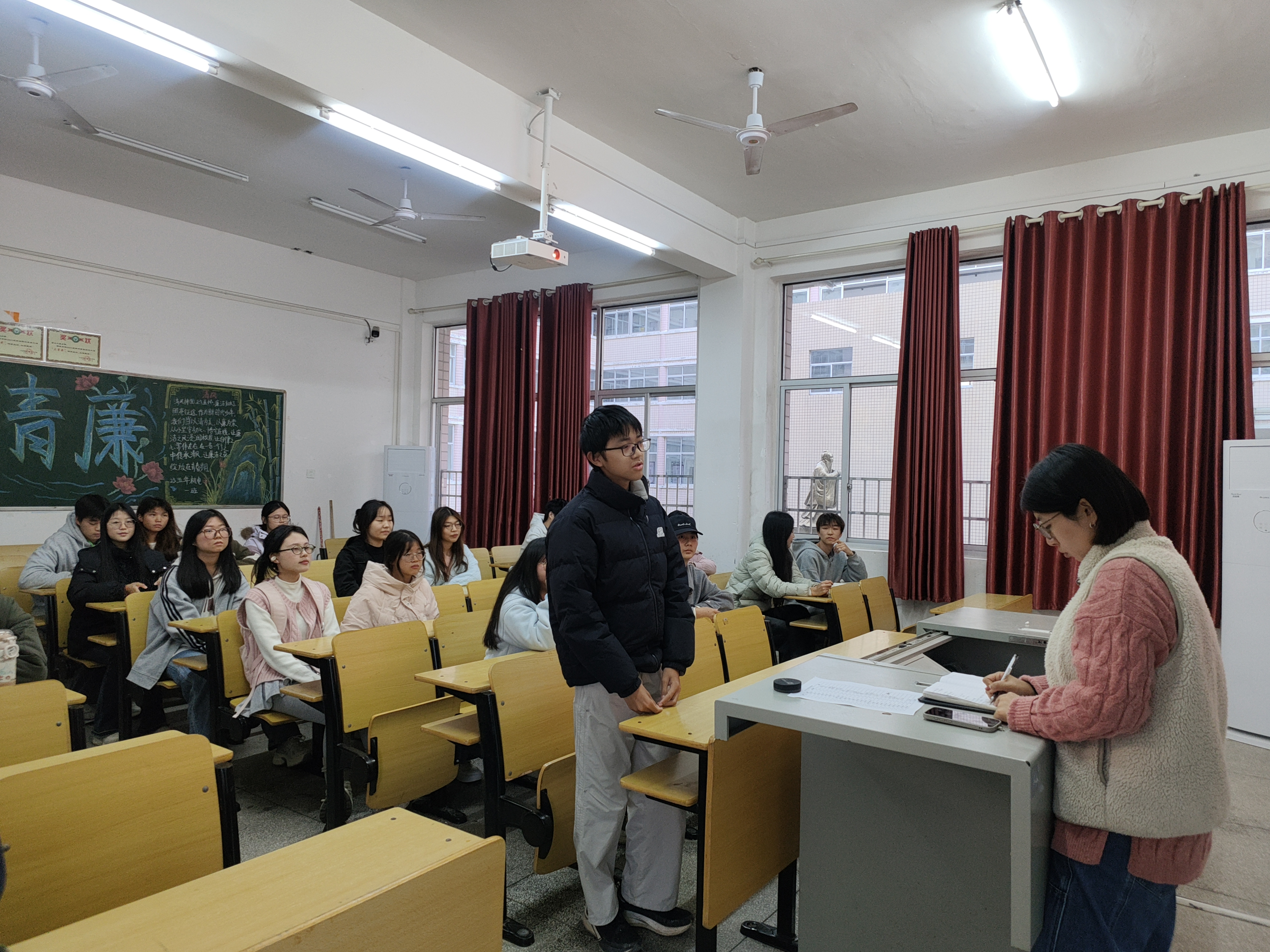 会上,学习委员对本班授课教师的教学组织、教学内容、教学方法及对学生学习方法的指导等方面进行评价,并针对相关方面问题提出相应建议。他们既谈到了教师上课的优点同时也提出了一些教师的不足及相关意见和建议。同学们认为大多数教师专业知识扎实、授课条理清晰、课堂内容丰富、教学方式多元化等;但同时也反馈有的老师授课进度较快或者较慢、没有课堂互动、课堂枯燥乏味、理论与实践安排不合理、讲课速度过快抓不到重点等方面的问题,并提出希望老师多开展实践教学,能将理论与教学相结合等方面的建议。