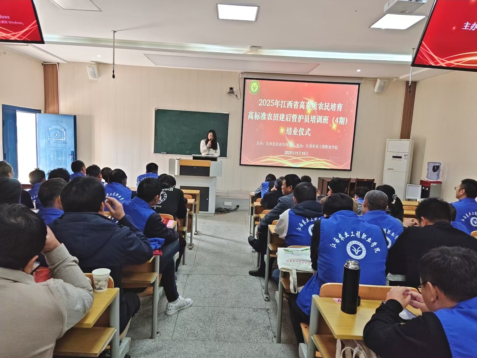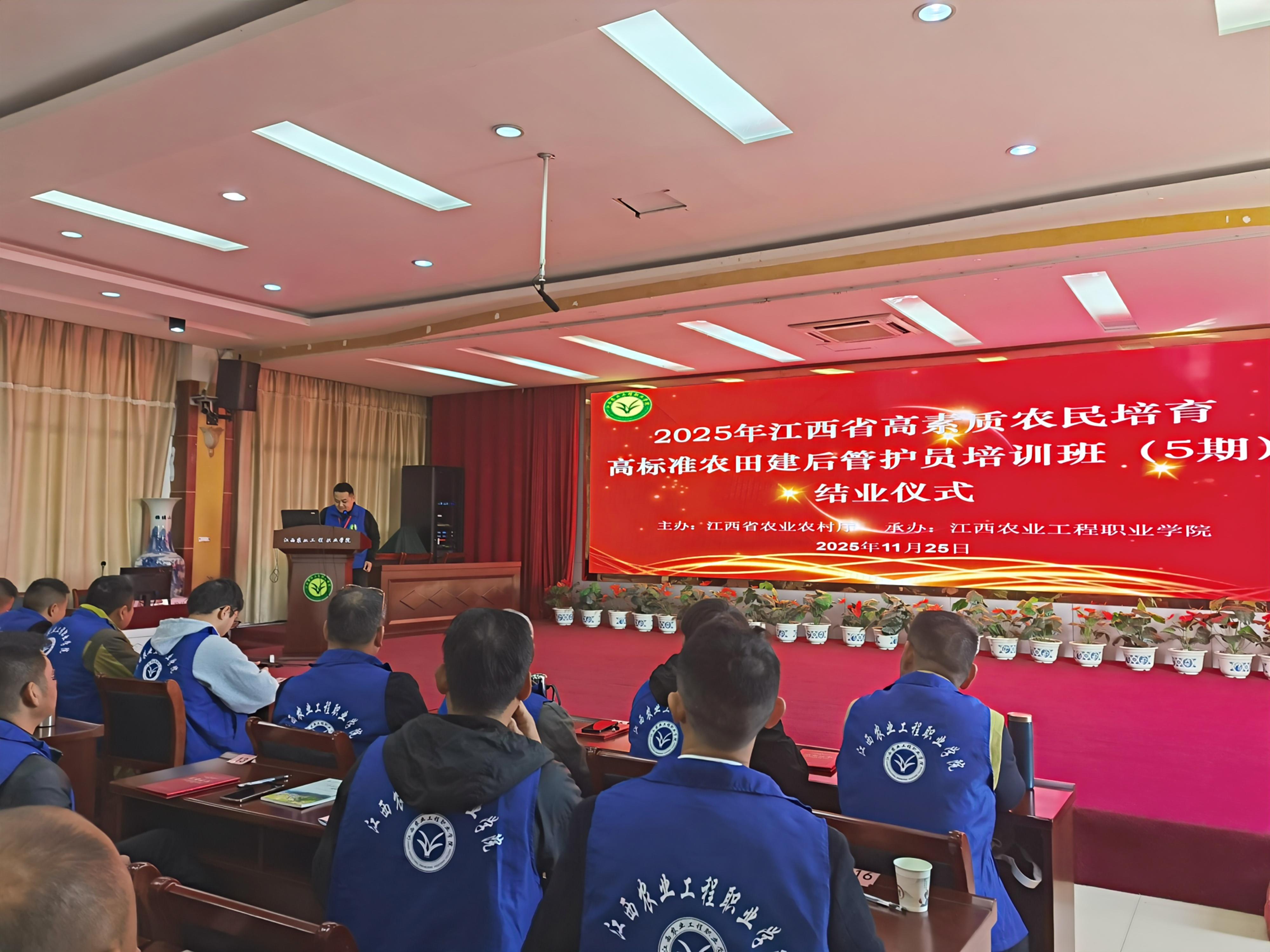 粮安天下,地为根基。高标准农田是保障国家粮食安全的“压舱石”,而要让这些“沃野良田”长期持续发挥效益,一支专业化、高素质的建后管护员队伍至关重要。今年10月至11月,江西省农业农村厅高瞻远瞩、系统谋划,由江西农业工程职业学院具体承办,成功组织实施了“2025年江西省高素质农民培育暨高标准农田建后管护员”系列培训。五期培训班,犹如五场精准的“及时雨”,滋润着赣鄱大地,为来自全省各地的250名农田“守护者”充电赋能,为夯实江西粮食安全基础、全面推进乡村振兴注入了澎湃的人才活力。