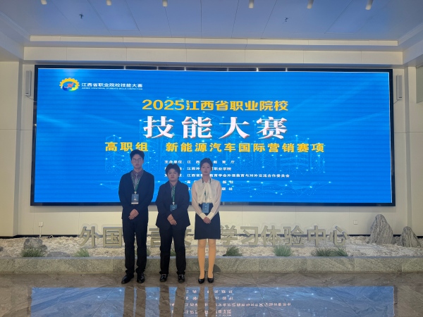 11月19日,2025年江西省职业院校技能大赛新能源汽车国际营销赛项在江西外语外贸职业学院落幕。由经济管理学院肖丽娟、聂晓两位老师带队,24商英班黄丽、赵斌、肖雨涵三位同学组成的参赛队伍,代表学院参加了此次大赛。比赛吸引了全省33所高职院校的积极参与,经过激烈角逐,学院参赛队伍最终获得团体三等奖。
