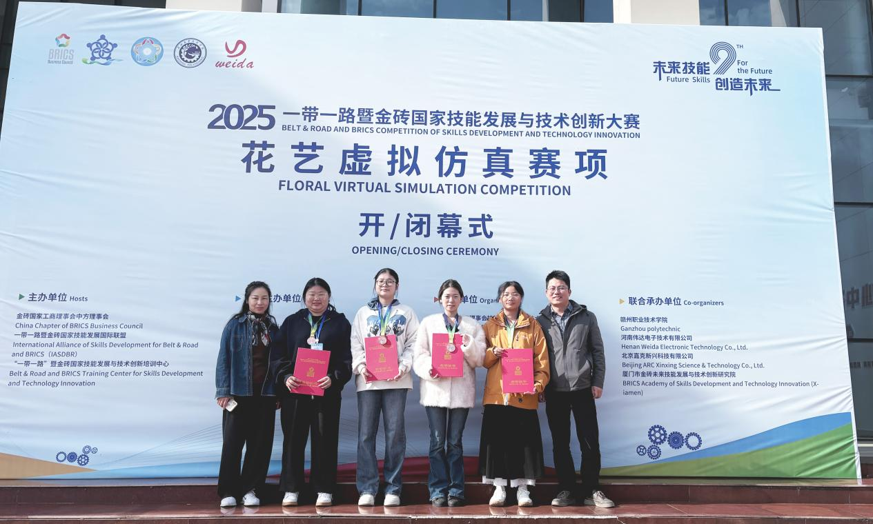 11月21日至23日,2025年“一带一路”暨金砖国家技能发展与技术创新大赛花艺虚拟仿真赛项在赣州职业技术学院圆满落幕。本次比赛高职组共有来自全国各地的103支队伍同台竞技,生物工程学院选派2支代表队参赛,围绕命题要求自主完成作品设计、场景定位与虚拟仿真制作,凭借扎实的技能功底与出色的团队协作,最终荣获2个三等奖。