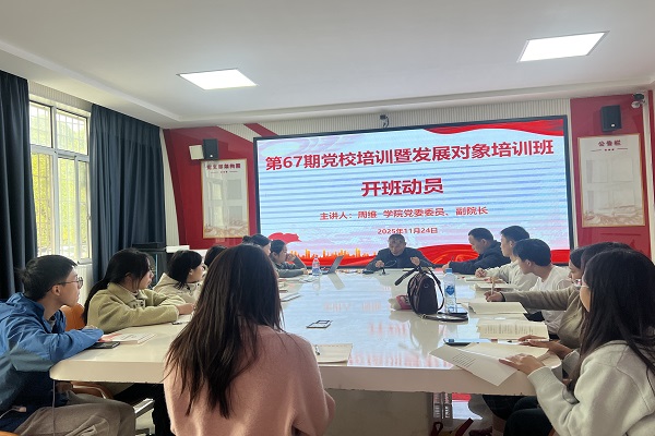 为进一步提高党员发展对象政治理论水平,强化党性修养,学院党校举办了第67期发展对象培训班,于11月24日至11月26日集中全天培训,12名发展对象参加此次培训。