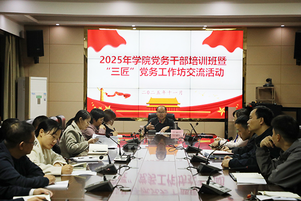 为深入学习贯彻党的二十届四中全会精神和习近平总书记考察江西重要讲话精神,巩固拓展深入贯彻中央八项规定精神学习教育成果,进一步落实基层党建工作要求,着力提高全院党务干部的业务素质和党务技能,11月5日至6日,学院在惟公楼409会议室举办2025年党务干部培训班暨“三匠”党务工作坊交流活动,学院党委委员、副院长吕湘江出席开班仪式并作动员讲话。学院党委委员、纪委书记李建喜为全体学员作辅导报告。