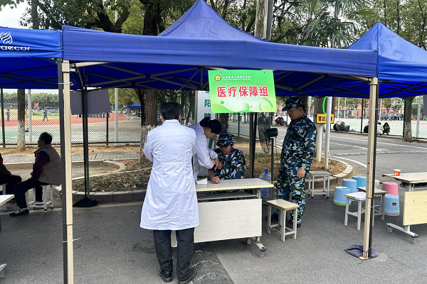 为应对训练期间可能出现的各类突发健康状况,校医务室在训练场边设立了设施齐全的“军训医疗救护站”,选派经验丰富的医护人员全天候值守。站内配备了充足的急救药品、急救车等,能够快速处理中暑、擦伤、扭伤、腹痛等常见训练不适。同时,还安排了流动医疗巡视员,携带急救药箱不间断巡查,确保一旦出现状况,能够第一时间发现、第一时间处置。