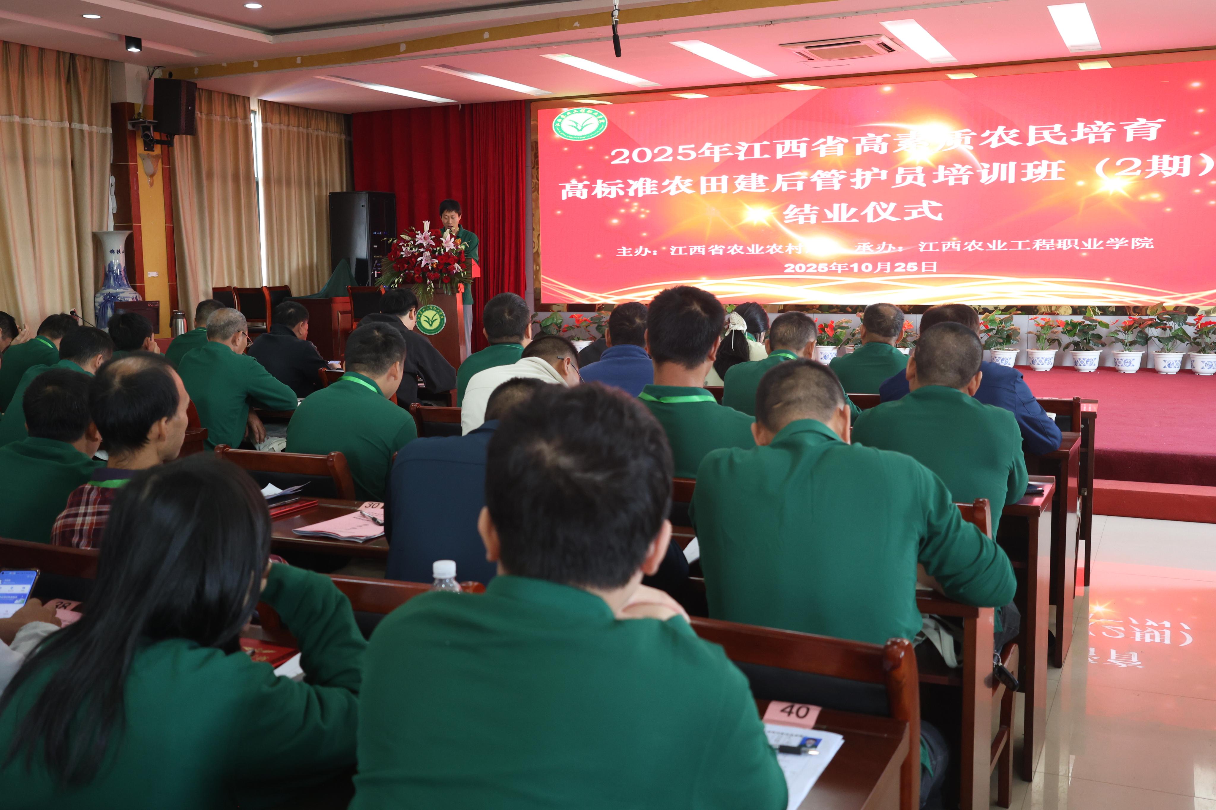 10月25日,由江西省农业农村厅主办,江西农业工程职业学院承办的2025年江西省高标准农田建后管护员培训班第2期培训圆满结束。经过为期6天的集中学习,来自吉安、鹰潭的50名学员完成学习任务。