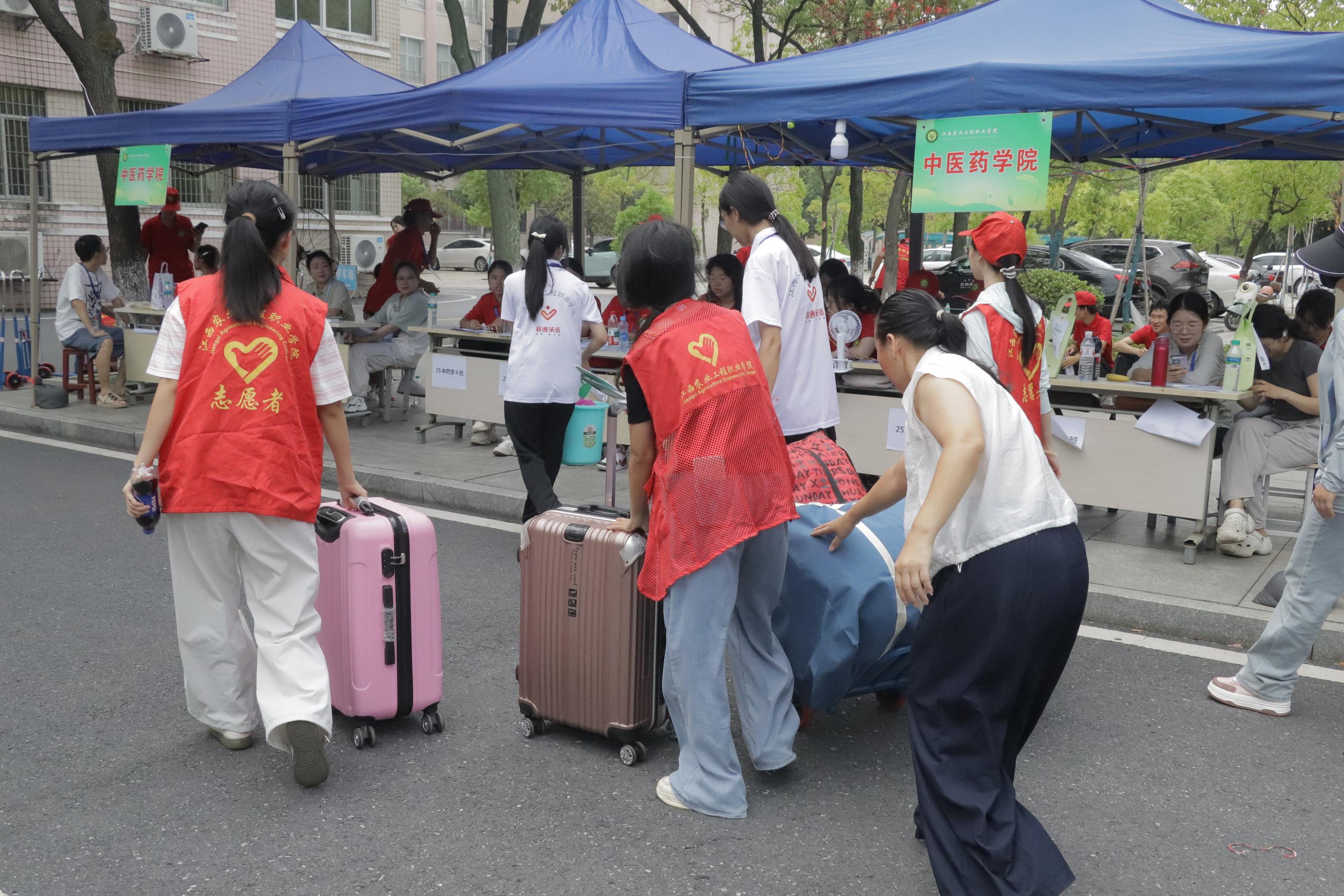清晨7时20分,志愿者全员到岗值守。伴随新生陆续抵达,身着红色马甲的志愿者坚守于校门路口、报到区域、宿舍楼栋等岗位,以饱满的精神状态迎接每位新生。当新生及家长抵达时,志愿者主动上前协助搬运沉重行李,引导至登记处,并全程陪同办理入学登记、军训服领取及行李安置等手续,既提升了报到效率,亦彰显了学院的人文关怀。随后,志愿者沿途详细介绍图书馆、食堂、操场等设施的方位与功能,助力新生快速熟悉校园环境。全过程充分展现了志愿者积极进取的精神风貌与奉献意识,传递了新时代青年的责任担当,更体现了学院深厚的育人底蕴与优良学风。