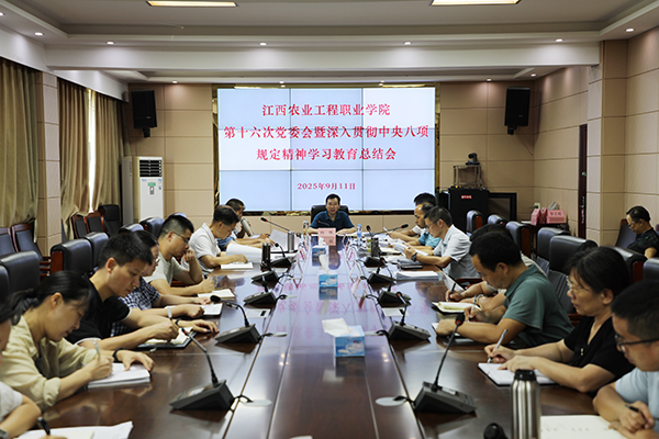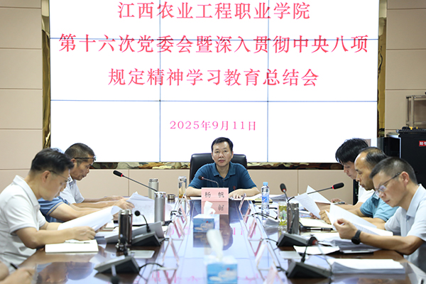 9月11日,学院召开第十六次党委会暨深入贯彻中央八项规定精神学习教育总结会议,传达学习习近平总书记重要指示精神和中央党的建设工作领导小组会议、省委常委会及省委教育工委会议精神,总结学院学习教育成效,研究部署巩固拓展学习教育成果、锲而不舍落实中央八项规定精神、推进作风建设常态化长效化工作。学院党委书记杨帆出席会议并讲话,其他班子成员、各党支部书记及各部门负责人参加会议。