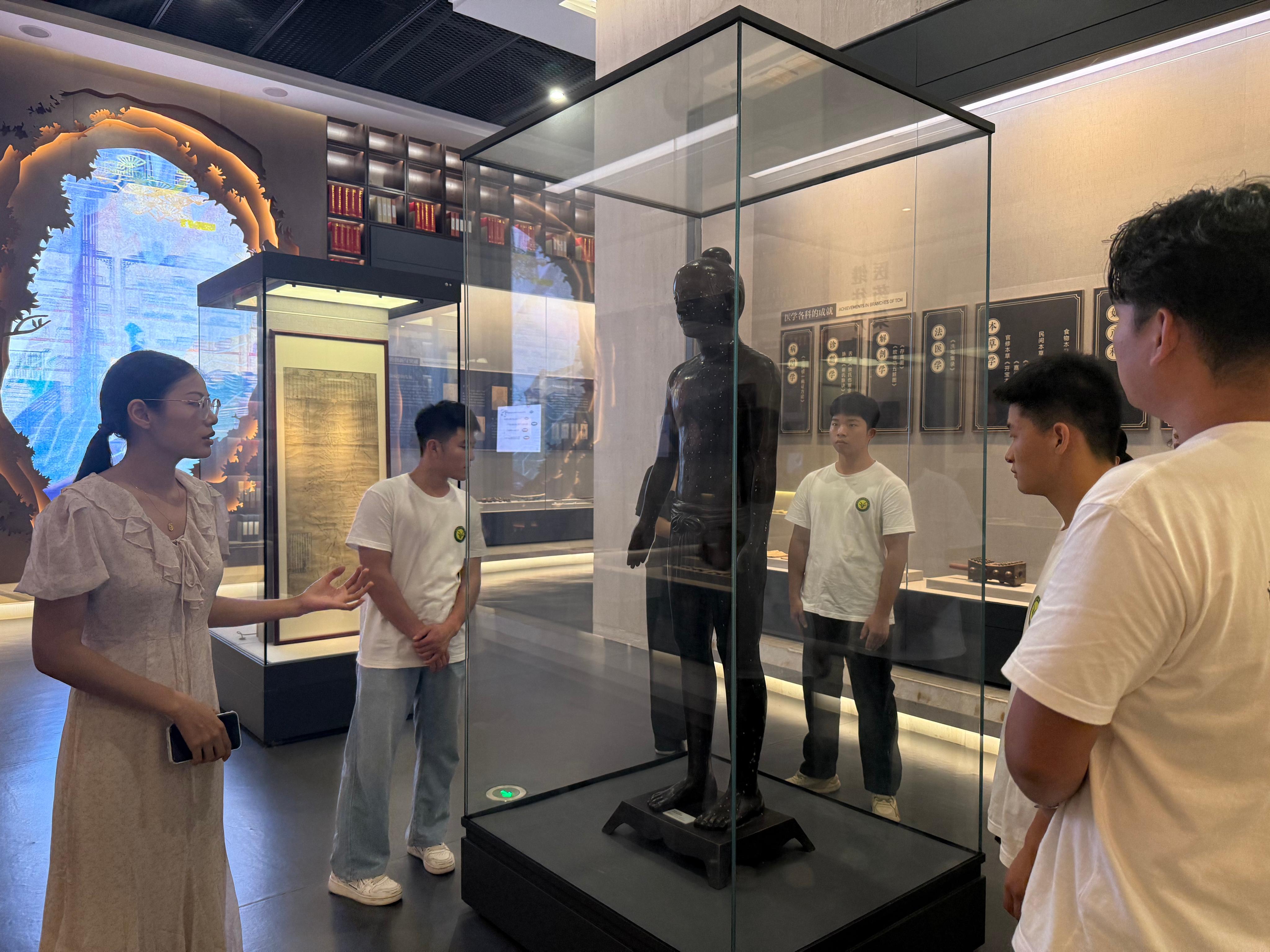队员们在一首《吴茱萸汤》的歌诀中走进目前全国最大的中医药博物馆——中国药都中医药博物馆,800余件中医药老物件见证中医药文脉的绵延不绝,2000余件分类齐全的中药材标本灵动地诉说着中医药的独特魅力,队员们表示“中医药非遗不仅是博物馆里的标本,更是要靠我们接过去的活态传承”。