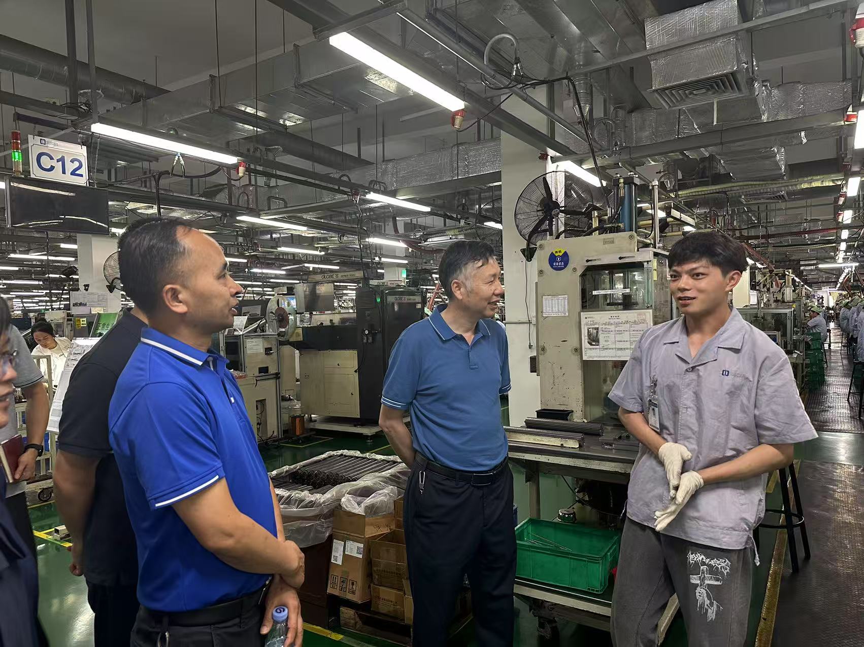 座谈会后,杨帆一行实地考察企业生产车间、员工宿舍及食堂,重点了解岗位工作强度、职业发展路径及生活保障条件。在自动化生产线上,杨帆与技术主管深入交流,针对“学生技能与岗位需求匹配度”问题提出具体建议:“希望企业将现场工程师培养标准融入学院课程体系,共同打造理论+实践的闭环培养模式。”