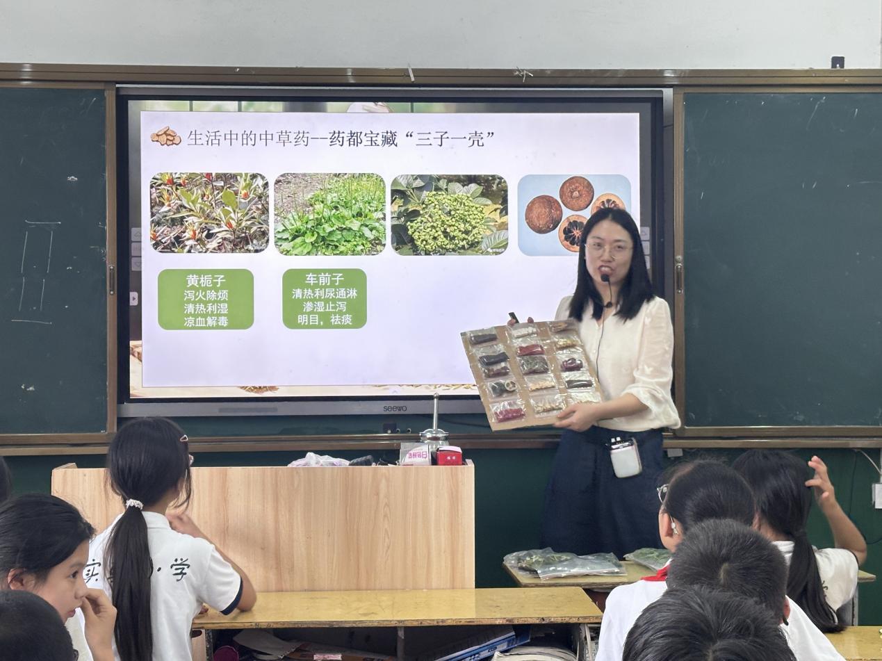 在“探药都”环节,中药学教师刘庆珊以樟树“药都”美誉为切入点,通过介绍葛玄开创药业先河的故事、千年药市的兴盛历史以及“樟帮”中药炮制技艺中“白芍飞上天”“陈皮一条线” 等精湛手法,让孩子们领略到樟树作为“药都”的深厚底蕴。