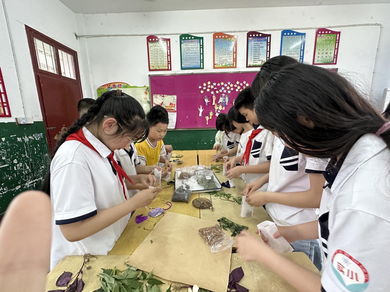 “猜药名”互动游戏将现场气氛推向高潮,孩子们通过抢答药名,在趣味中加深对中药材的认知。随后的“做香囊”环节,孩子们根据配方,将艾叶、白芷、藿香等药材研磨混合,装入香囊。一个个散发着药香的香囊不仅具有驱蚊提神的功效,更成为孩子们传承中医药文化的生动载体。孩子们纷纷表示,此次活动不仅学到了实用的中医药知识,更领略了中医药文化的博大精深。