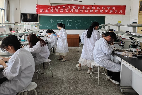 为弘扬中医药传统文化,强化学生专业技能,提升实践应用水平,5月15日下午,2025年学院职业教育活动月暨第八届职业技能竞赛节“中药鉴定技术”比赛在实训楼304室举行。来自中药学、中药制药等专业的学子们同台竞技,以专业视角解码本草奥秘,上演了一场精彩纷呈的技能大比拼。