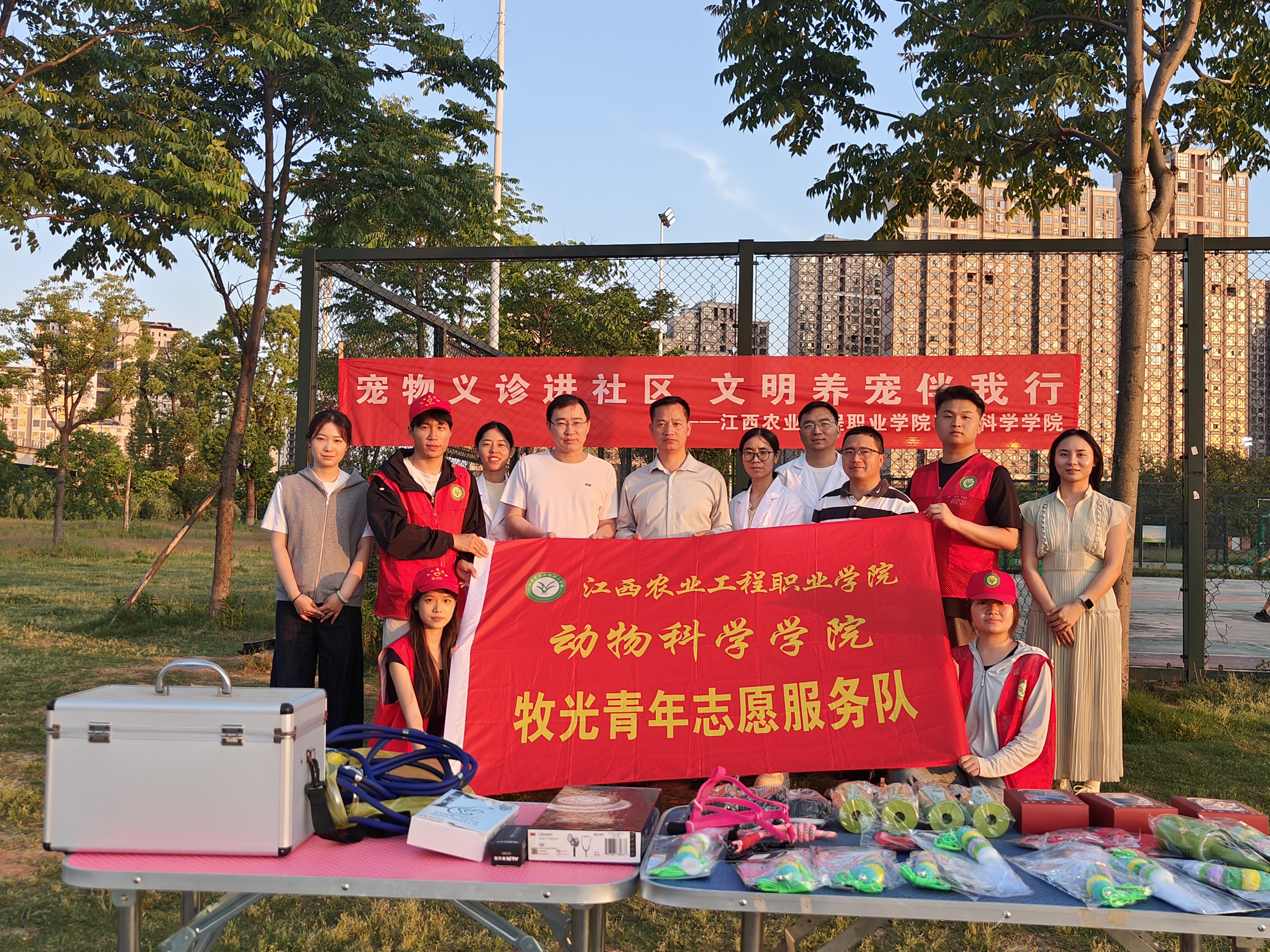 为弘扬雷锋精神,践行党建引领团建的工作理念,近日,动物科学学院党支部联合“牧光青年”志愿服务队走进药都沿江公园,开展“宠物义诊进社区 文明养宠伴我行”公益服务活动。活动将专业实践与志愿服务深度融合,为居民提供科学养宠指导,传递文明养宠理念,助力社区和谐建设。