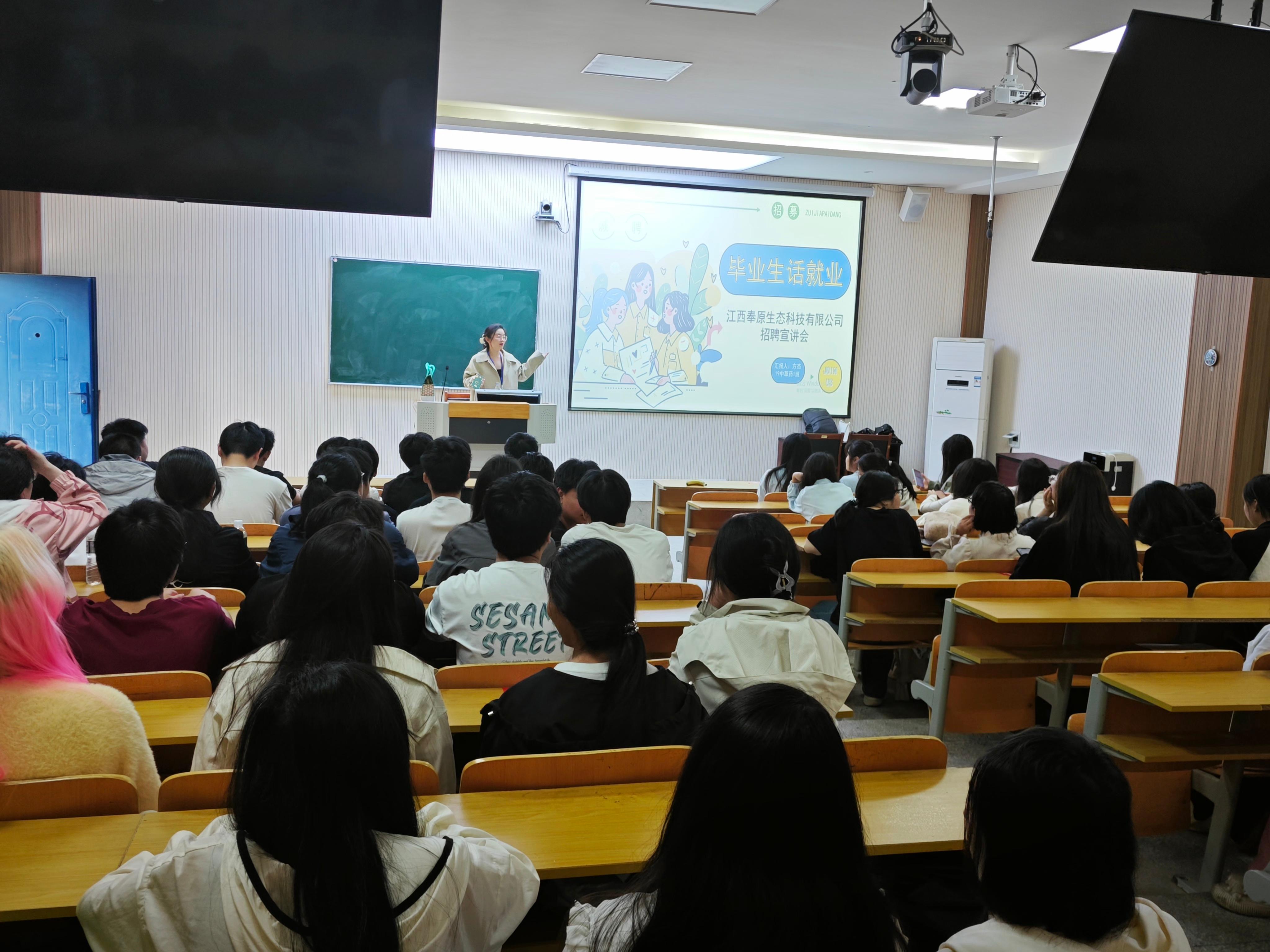 在宣讲中,方杰回顾了自己在中医药学院的学习生活,表达了扎实的专业知识和积极的实践探索对个人成长的重要性。她认为,大学期间参与的科研项目和实习经历为她日后进入职场打下了坚实基础。谈及在江西奉原生态科技有限公司的工作,她详细介绍了公司在中医药研发、生态种植等方面的创新实践,让同学们对行业前沿有了更直观的认识。