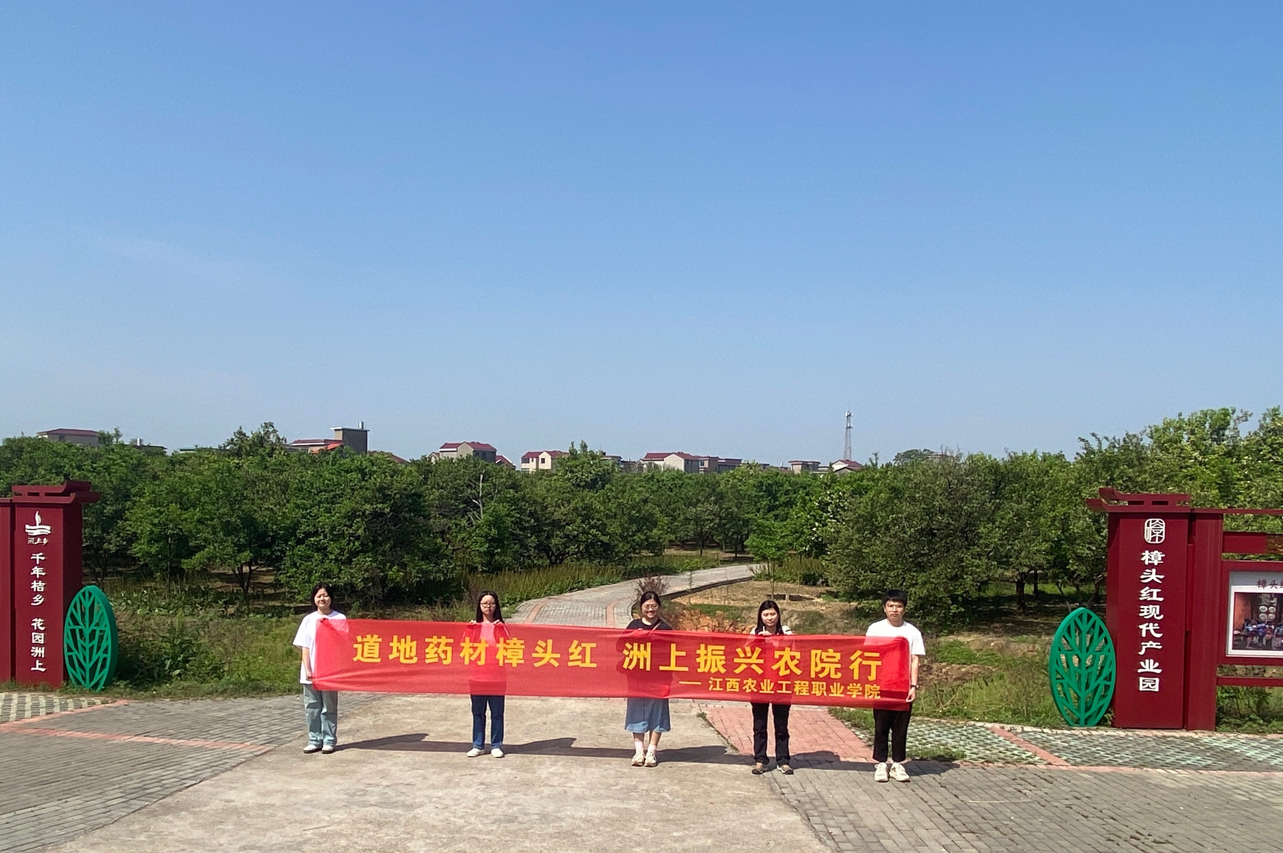 随后,实践队前往了樟头红种植示范基地,实地观察樟头红的生长环境和种植现状。在这里,他们了解到为提升樟头红的产量和品质,基地采用了一些新的种植技术,如引进滴灌系统精准灌溉,利用生物防治技术对抗病虫害,在林下种植车前草等中药材,合理发展林下经济等。接着,队员们来到了“赣食十味”药食同源食材科普体验中心,对当地的樟头红文化有了更深的理解,深入了解到当地依托“陈皮”文化资源打造的旅游基地及其产业发展前景。