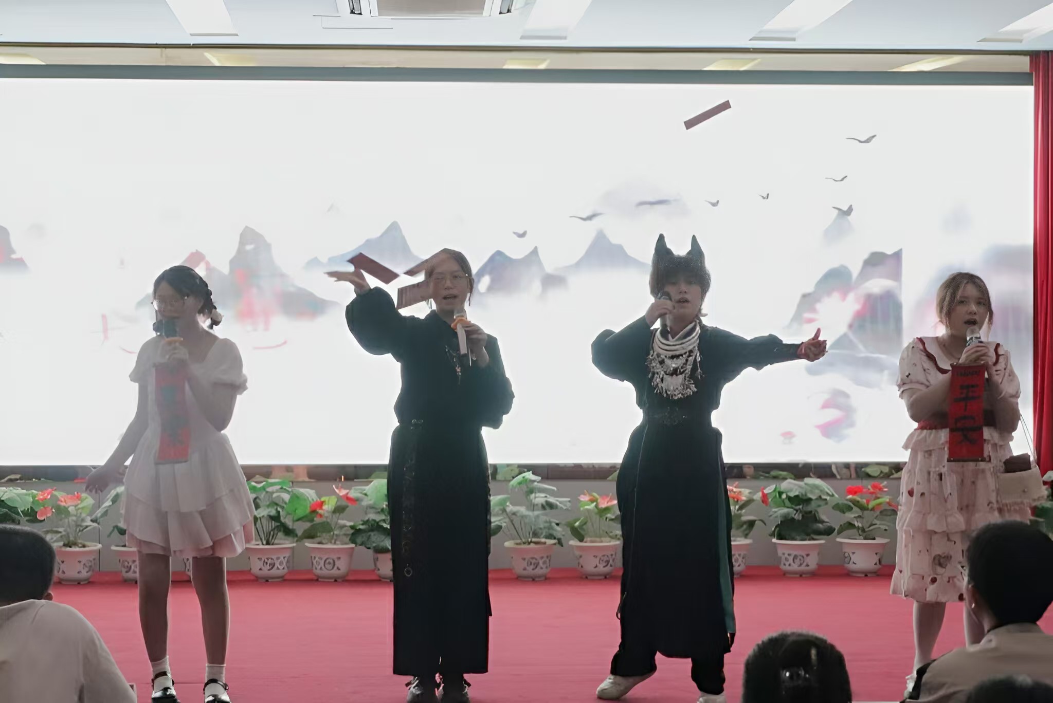 活动当晚,各学生社团精心筹备的节目轮番登场,为师生呈现了一场视听盛宴。合唱团的深情演唱扣人心弦,文学社以铿锵之声抒发家国情怀,街舞社用动感舞姿点燃全场热情,武术协会刚柔并济的表演尽显中华文化底蕴,表演协会则以幽默诙谐的剧情引发阵阵欢笑。此外,穿插其中的“音画交织”趣味竞猜环节,通过经典旋律与青春记忆的碰撞,进一步拉近了观众与舞台的距离,将现场氛围推向高潮。