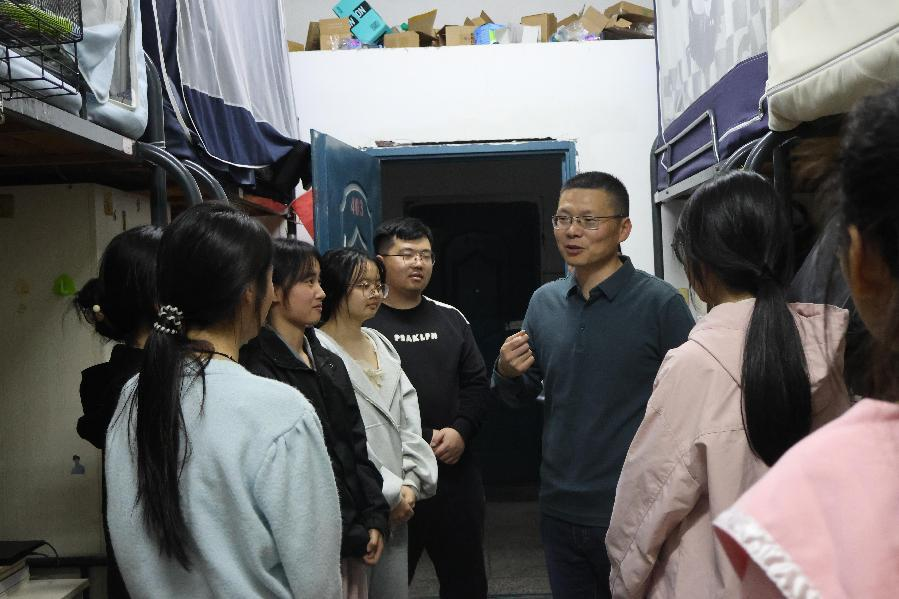 主题班会结束后,李建喜来到学生宿舍,与2023级学生代表面对面交流。了解同学们学习生活情况,学业进展、职业规划,认真听取同学们的想法和意见建议,提醒大家珍惜校园时光,锻炼成长自我,科学规划安排学习和生活。