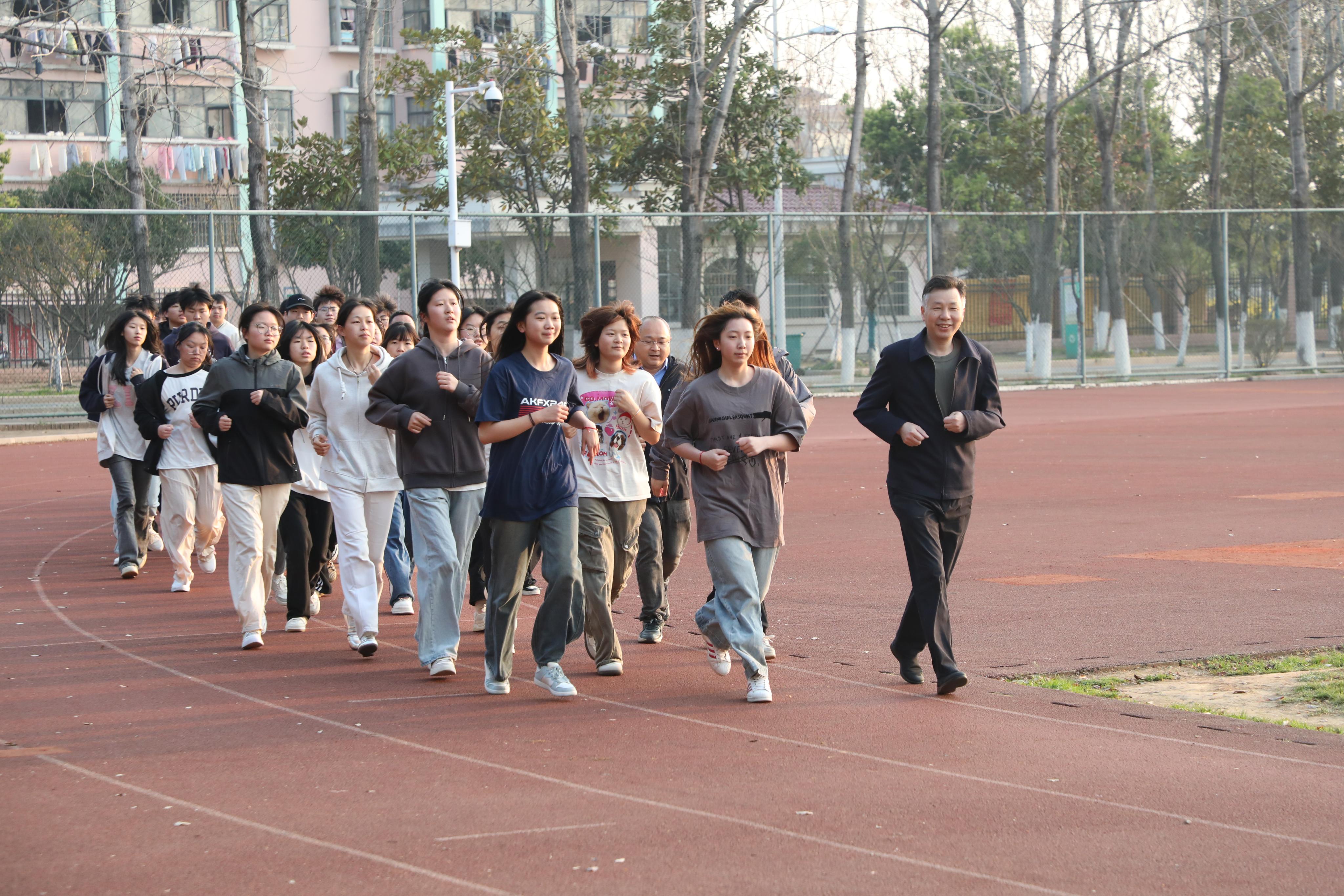 25日清晨,杨帆来到操场上,与24种子生产班的同学们一起晨跑。他鼓励同学们积极参加体育活动,养成日常锻炼的良好习惯,练好身体、增强体魄、磨练意志。同学们热情回应,表示要经常参加体育活动,以健康的青春拥抱美好的大学生活。