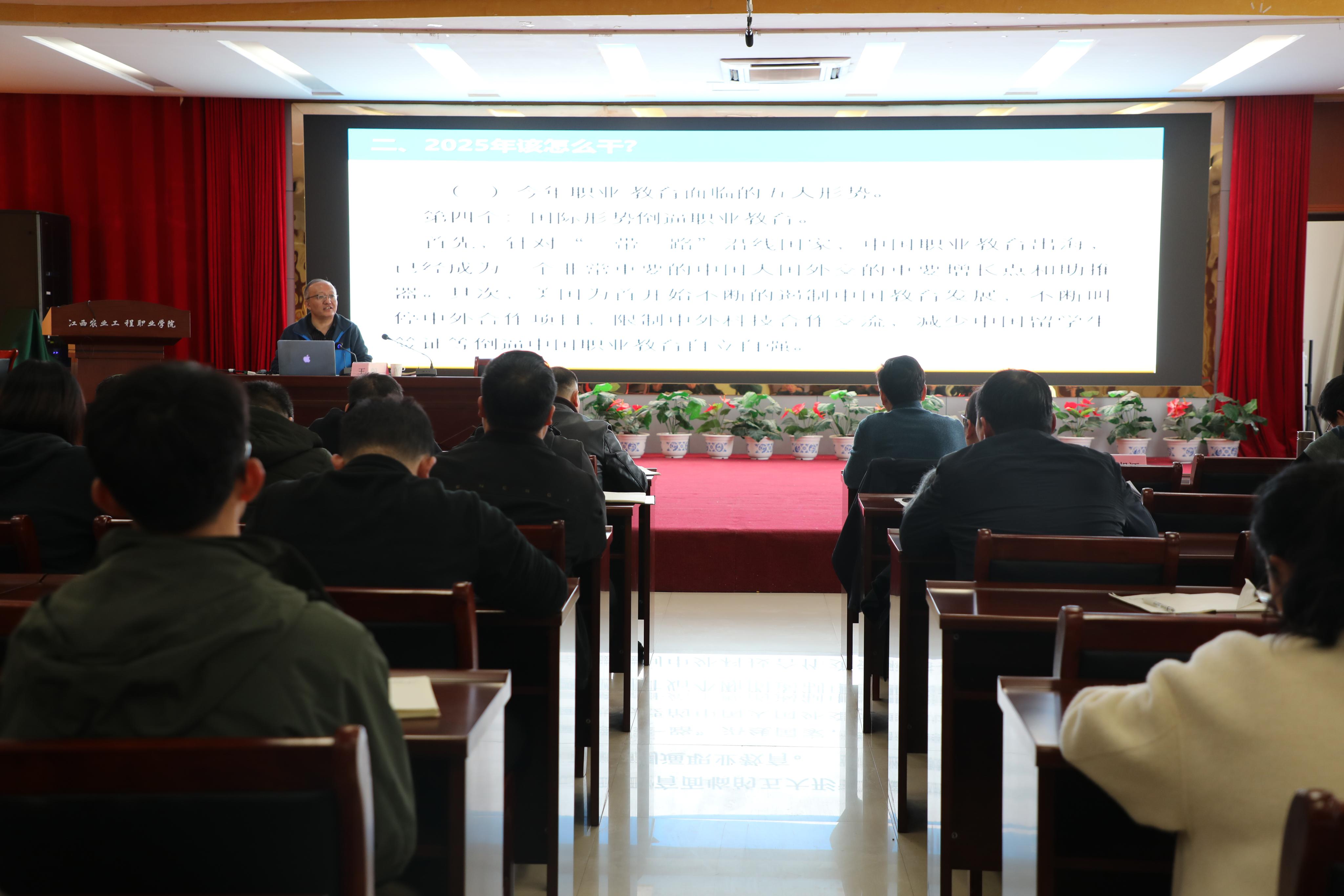 3月20日下午“新双高政策解读和申报指导”主题讲座在学校多功能报告厅正式开场,学院党委副书记、院长杨帆出席,副院长许振华主持会议,在家院领导、全体中层干部及各分院(部)骨干教师参会。专家凭借丰富的行业经验,从2024年职业教育5个重要的会议入手,分析职业教育发展新方向,指明双高建设着力点,同时结合自身经验,分享申报要点。主题报告后,进行了分组讨论。
