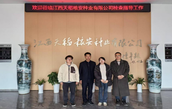 当日,一行人走访了江西天稻粮安种业有限公司。江西天稻粮安种业有限公司,作为袁州区培育的省级龙头企业,是袁州区水稻产业链闭环上的重要一环,研发了区域公用品牌、“赣鄱正品”和“湘赣红”认证品牌——“宜春大米”。公司自2012年成立以来一直致力于农业科技创新,专注于优质水稻的科研选育,多年来公司承担了多项部、省、市级重大科研攻关项目,也获得了多项国家级、省级荣誉,取得的成就得到了袁隆平院士高度评价,并为公司题词:“天稻种业,粮安万家”。