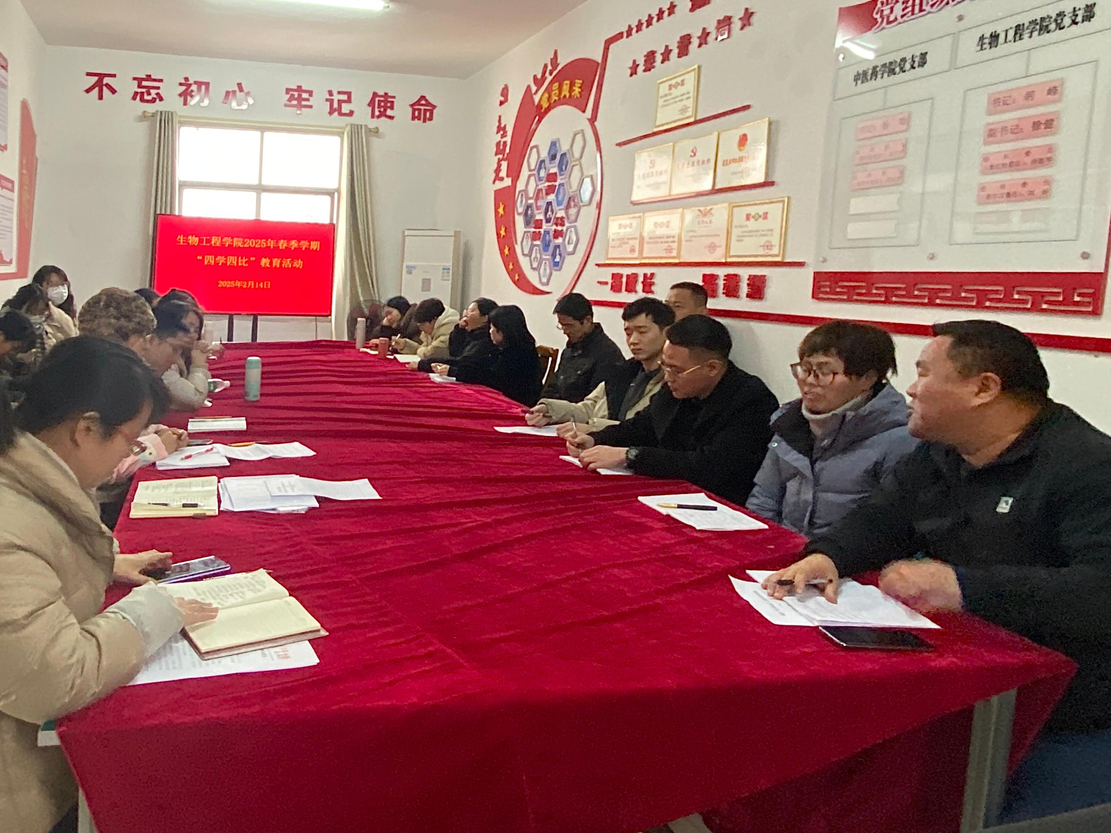 2月14日,生物工程学院在惟朴楼310会议室召开2025年春季学期“四学四比”教育活动交流研讨会。学院党委副书记、院长杨帆出席会议并提出要求,分院党支部书记主持,分院全体教职工参加会议。