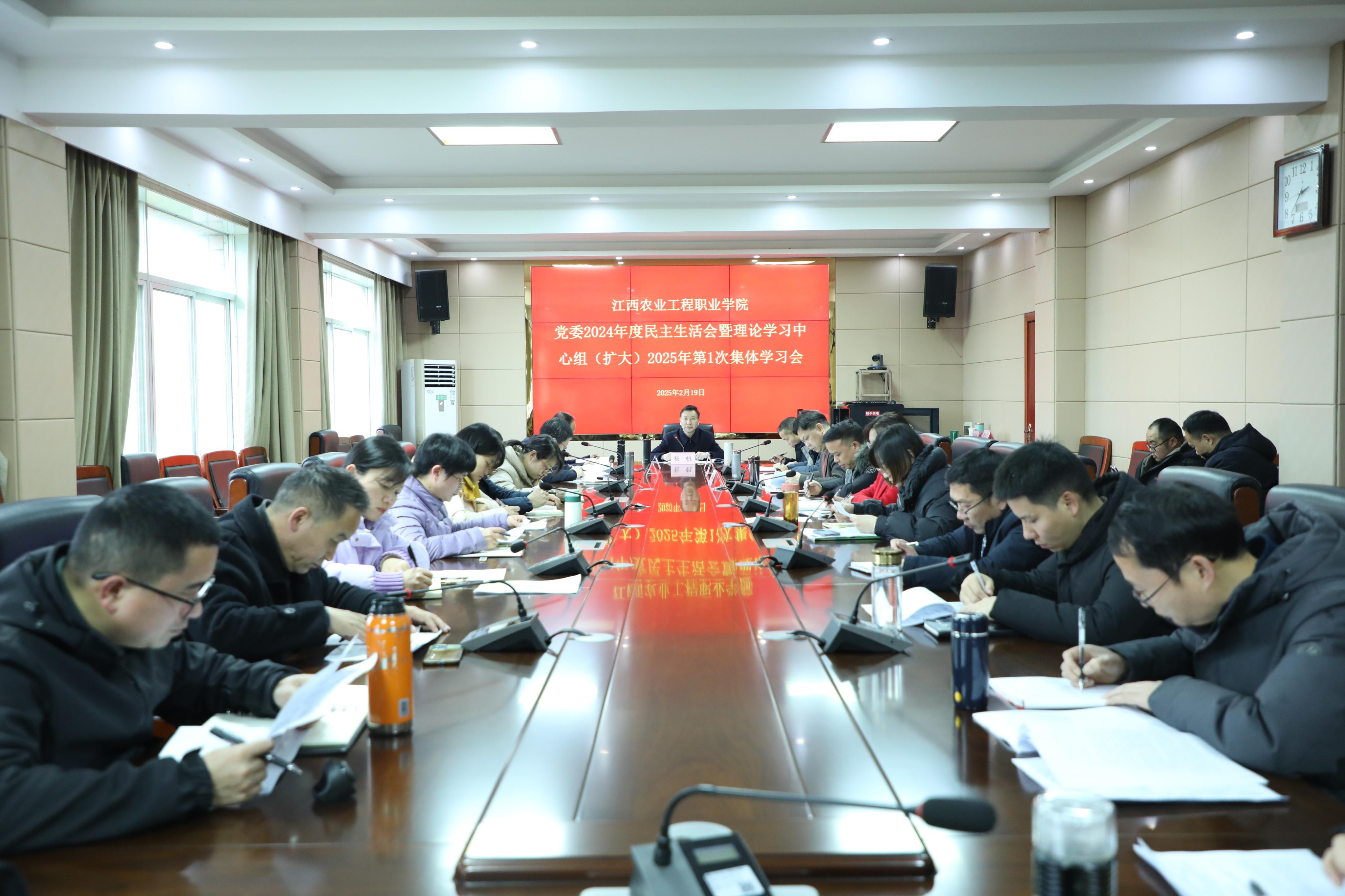 2月19日下午,学院在409会议室召开党委2024年度民主生活会会前专题学习暨理论学习中心组(扩大)2025年第1次集体学习会。学院党委副书记、院长杨帆主持会议并讲话。全体院领导参加会议。