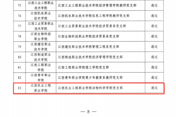 2月8日,省委教育工委公布了全省首批新时代高校党建示范创建和质量创优工作验收结果,动物科学学院党支部顺利通过首批“全省高校党建工作样板党支部”验收。