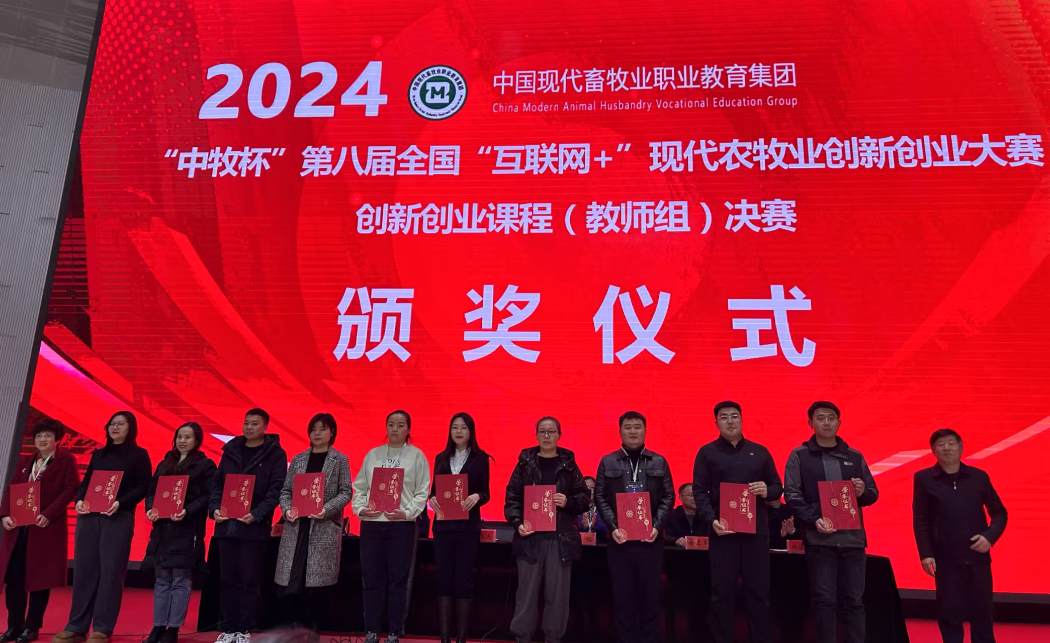 本届大赛由中国现代畜牧业产教融合共同体、中国现代畜牧业职业教育集团主办,江苏农牧科技职业学院承办,分为教师组课程项目、学生组普通项目、学生组“青年红色筑梦之旅”项目三个赛道,共有来自全国11个省15所院校的104件创新创业项目和课程报名参赛。经过专家初评,14个教师组课程项目、30个学生组普通项目和15个学生组“青年红色筑梦之旅”项目脱颖而出进入决赛,其中教师组以现场展示的方式同台竞技,一展风采,最终产生了4个特等奖、10个一等奖。