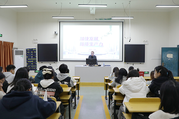 晚上,周维在第二多媒体以“加快发展新质生产力”为题给幼儿师范学院师生上了一堂生动的党课,深入浅出地讲授了“什么是新质生产力”“为什么要加快发展新质生产力”和“怎样加快发展新质生产力”等内容。