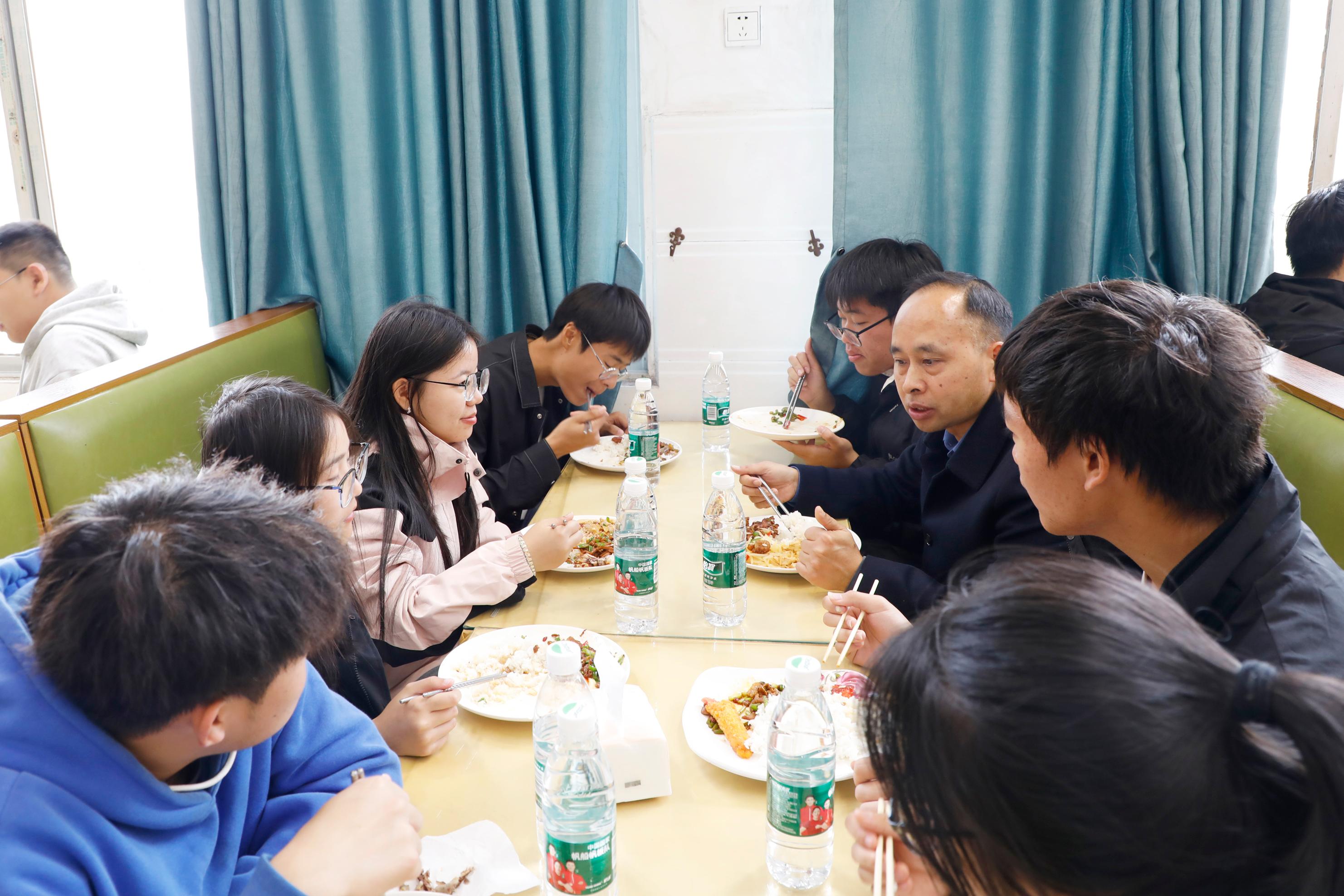 中午,许振华来到第二食堂,与24电子班在用餐的同学们聊家常,共进午餐。“你家是哪里的?食堂的口味价位如何?大家是喜欢吃称重菜还是打菜呢?”一句句提问,无不透露着对同学们的关怀。许振华还讲述了自己的大学经历,鼓舞同学们要踏实地学,积极地做,多锻炼自己。