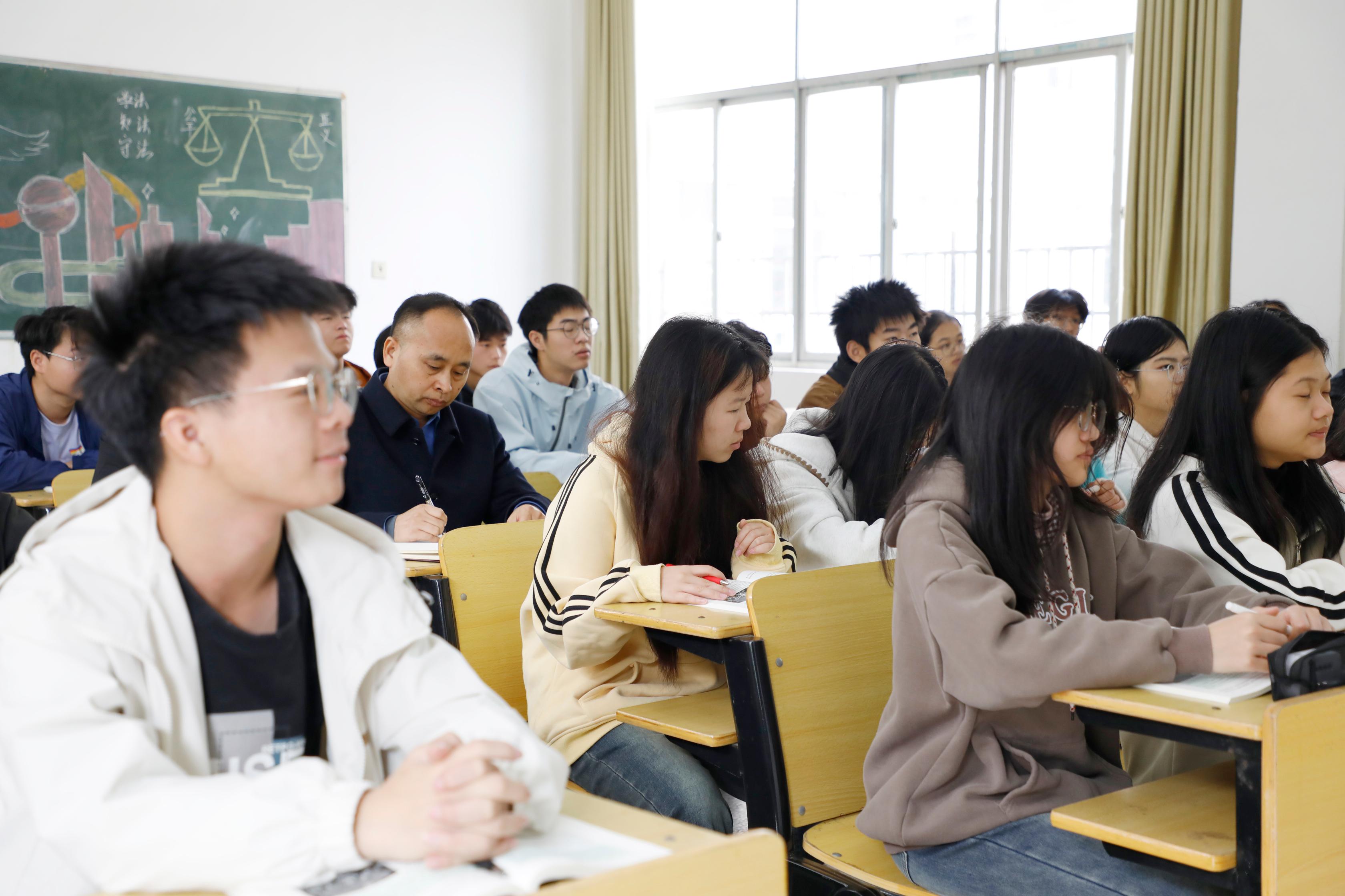 上午,许振华与24农装班学生同上一堂思政课,听取了陈柔老师主讲的《思想道德与法治》课程。课后,许振华对陈柔老师的认真授课给予了充分肯定,并对同学们提出了三点希望:一是珍惜大学时光,学好专业知识,不负青春韶华;二是利用实训、技能比赛等提高动手能力,培养自己的综合素质能力;三是积极参加各类活动,加强身体锻炼。
