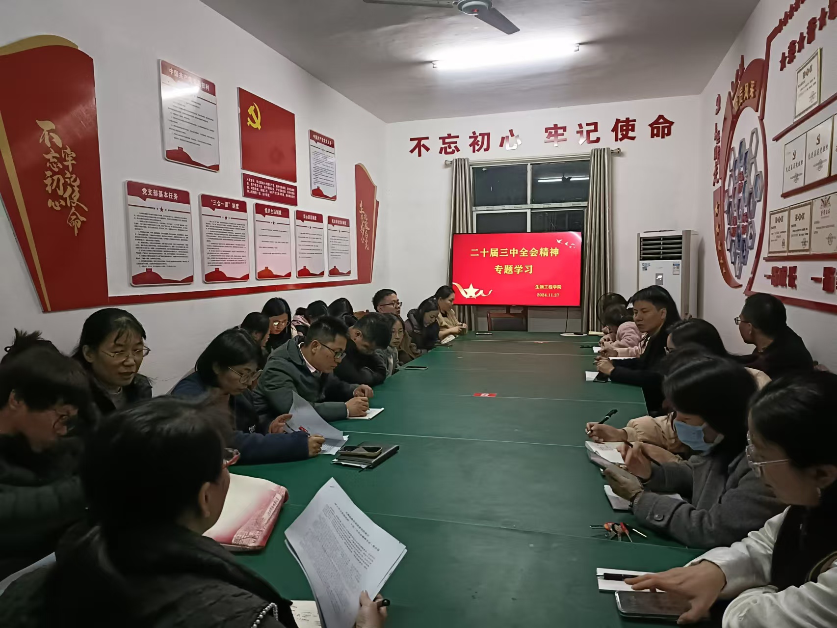 为了深入贯彻落实学习党的二十届三中全会精神,11月27日晚,生物工程学院全体专兼职教师观看了学习视频《中国共产党第二十届中央委员会第三次全体会议公报》,部门负责人传达学习《中共中央关于进一步全面深化改革、推进中国式现代化的决定》,并传达学院党委理论学习中心组学习(扩大)会议精神。