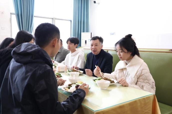 11月19日,党委副书记、院长杨帆深入学生,开展“双体验日”活动,与同学们同堂听课、同桌用餐,面对面座谈交流,为同学们上思政课,深入了解掌握学生的生活和思想状况,提升学院思想政治工作育人成效。