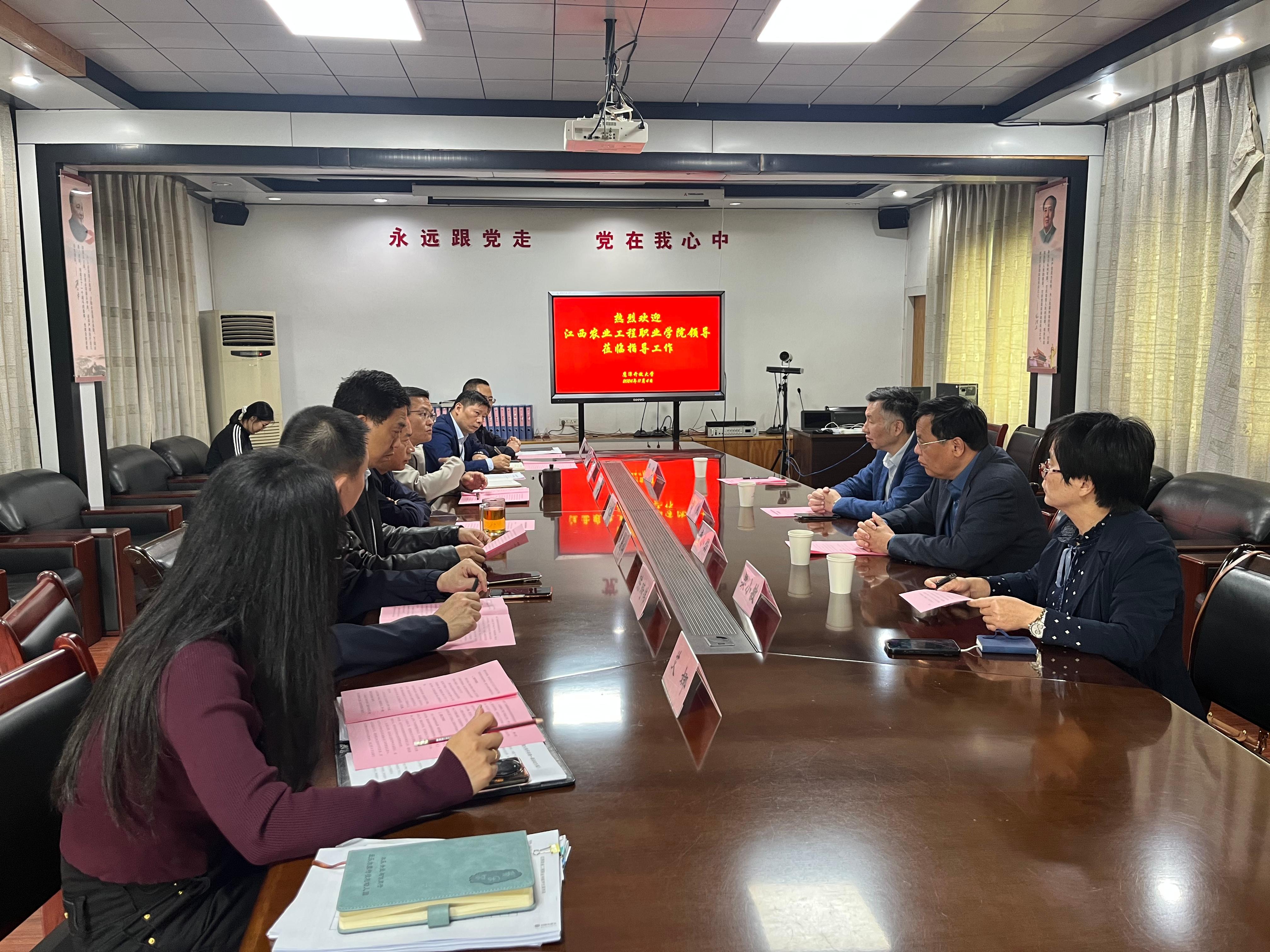 为更好地深入了解学院“一村一名大学生工程”校外教学点的教学运行情况,11月4日,学院党委副书记、院长杨帆带队,副书记章小朋,招生办、教务处负责人一行实地考察调研鹰潭开放大学。