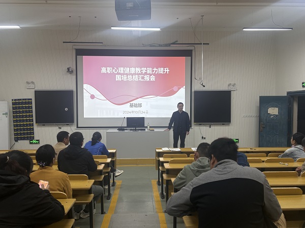 为贯彻落实《中共中央国务院关于全面深化新时代教师队伍建设改革的意见》精神,全面提升高职心理健康教师队伍的能力和水平,根据江西省教育厅教师工作处《关于做好江西省2023年度职业院校教师素质提高计划项目实施工作的通知》要求,学院于6月份派出付雨老师参加江西省高校师资培训中心在哈尔滨举办的高职心理健康教学能力提升培训班的国培项目,此次培训历时两周,内容丰富。同时为了将此次培训的成果进行总结与分享,促进部门教师队伍能力提升,10月24日晚,基础部高职心理健康教学能力提升国培总结汇报会在第二多媒体室举行,基础部全体专兼职教师参加此次汇报会。